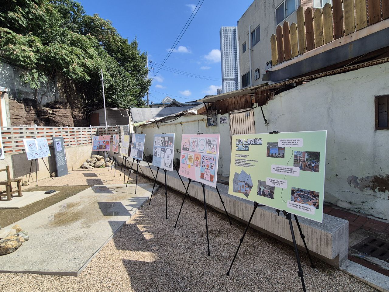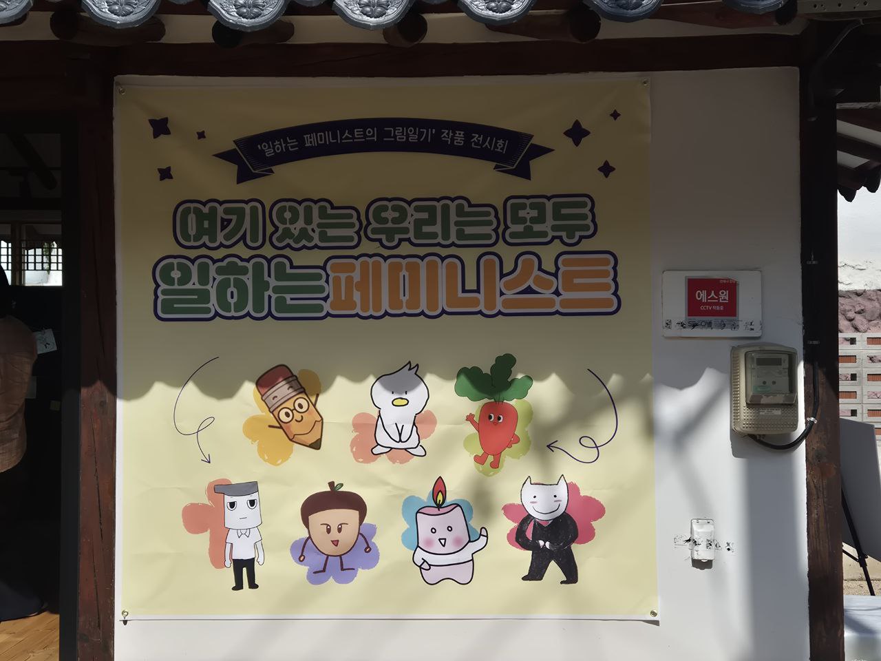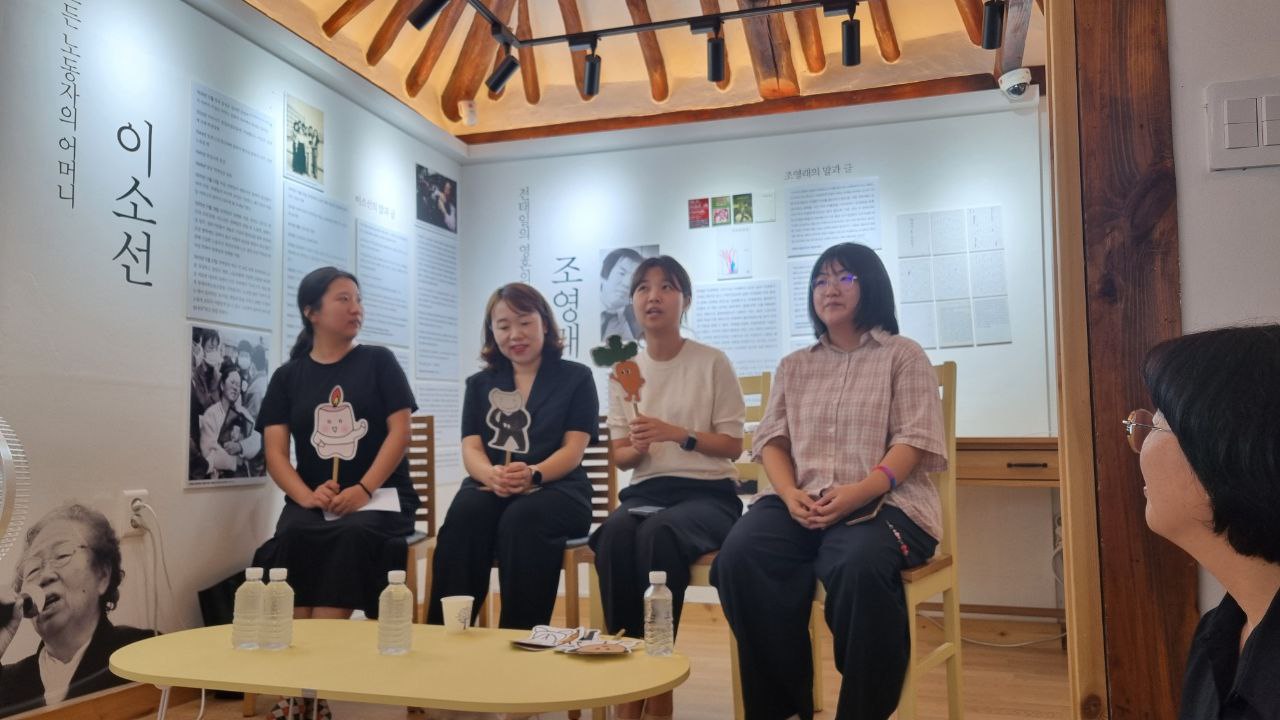 전시 장소는 전태일열사옛집이었습니다. 고즈넉한 한옥 분위기에서 전시도 보고 쉬어갈 수 있었습니다. 인스타툰 전시를 보러오신 분들이 전태일열사의 생애를 둘러보기도 하고, 전태일열사가 궁금해 찾아오신 분들이 인스타툰 전시를 구경하기도 하는 등 과거의 노동자와 현재를 살아가고 있는 노동자의 이야기가 자연스럽게 연결되는 공간이었습니다.