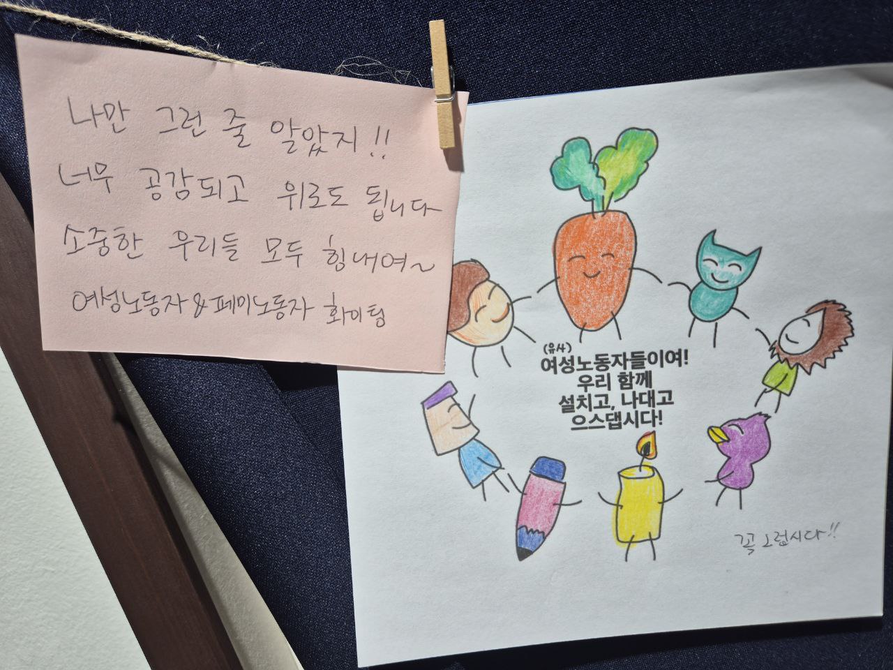 "우리 모두 힘내자. 우린 짱이야. 아자아자 일하는 페미 화이팅!"