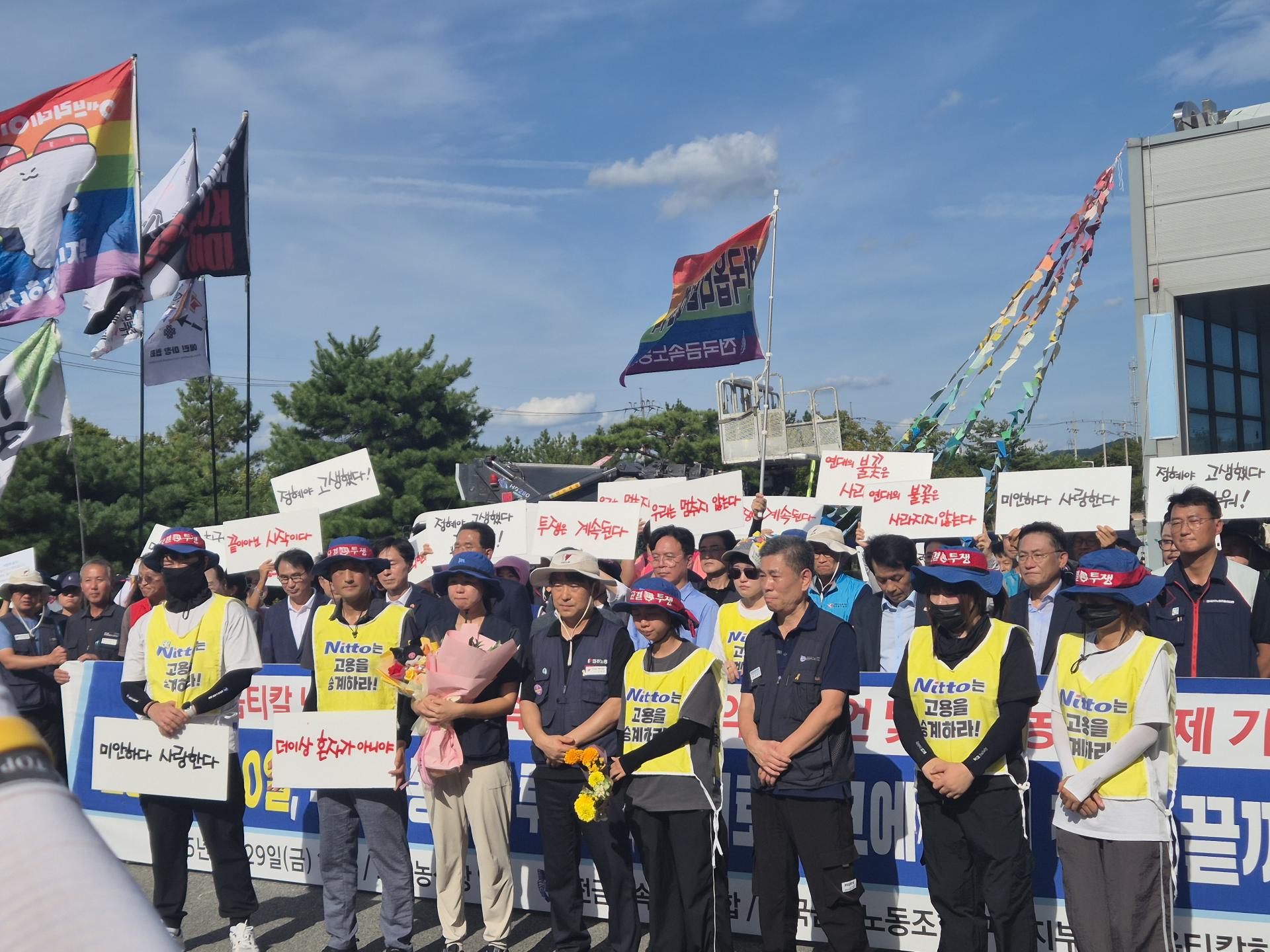 한국옵티칼하이테크지회 노동자들은 먹튀기업 니토의 만행을 고발하고 글로벌 기업의 사회적 책임을 묻기 위해 다시 투쟁을 시작한다. 곧 경주에서 APEC이 열린다. 10월 21일부터 30일까지 APEC투쟁단 모집으로 집중투쟁을 준비하고 있다.